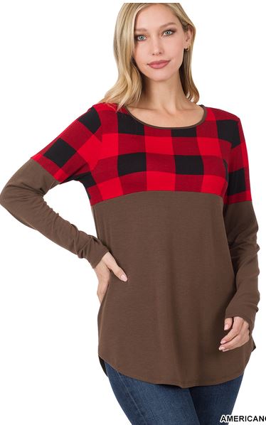 Americano Plaid Color Block Top